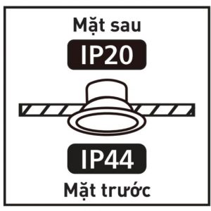 Đèn với thiết kế chống nước IP44, mặt sau chống nước IP20